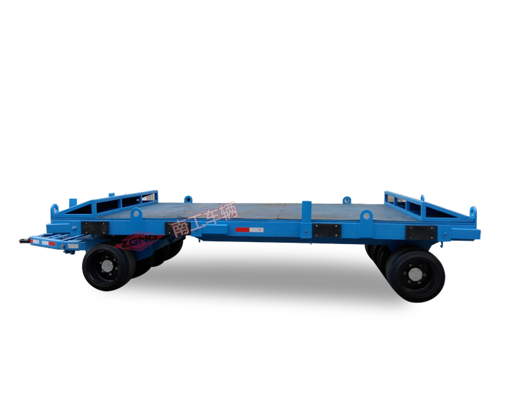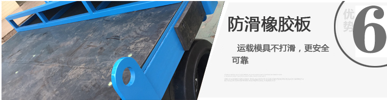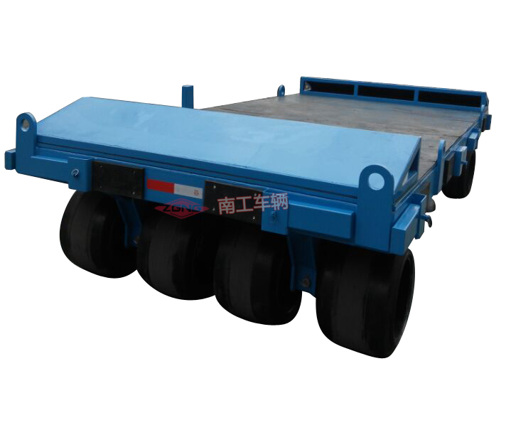 本拼搏在线(中国)唯一官方网站适用于工厂、码头、仓库、物流中心等物流周转运输,特别适用于模具周转,拼搏在线(中国)唯一官方网站承重35吨,平台铺20MM厚橡胶板。拖车本身无动力,可用5吨叉车、50KN牵引车牵引。