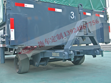 4.高度可调缓冲式牵引机构,不同吨位的牵引头只需要简单调节即可连接;牵引架弹簧复位设计,有效减缓牵引架对车架的应力损伤;